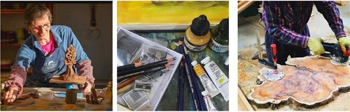 The many artistic forms represented include: painting, jewellery, pottery, glass, textiles, lino and collagraph printing, botanical printing, visual arts, photography, woodturning, tapestry weaving, collage and metalwork.