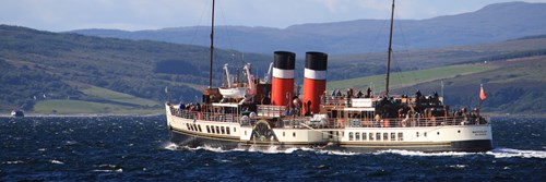 Built in 1947, our magnificent steamship cruises the waters of the West Coast of Scotland, linking Glasgow, Greenock and Largs with the beautiful islands, lochs and Highland villages around the Firth of Clyde and West Highlands.
