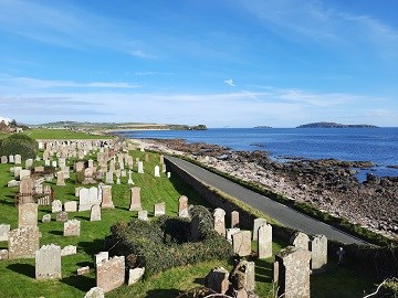 St Columba's footprint, can be seen between Kiel Cave and St Columba's Chapel (now in ruins) at Southend,