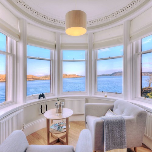 The Turret offers stunning views over Oban's harbour and the Sound of Kerrara