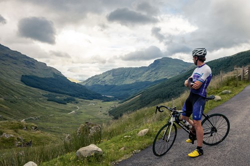 Cyclist looking over Argyll Forest Park, Credit: Wild about Argyll