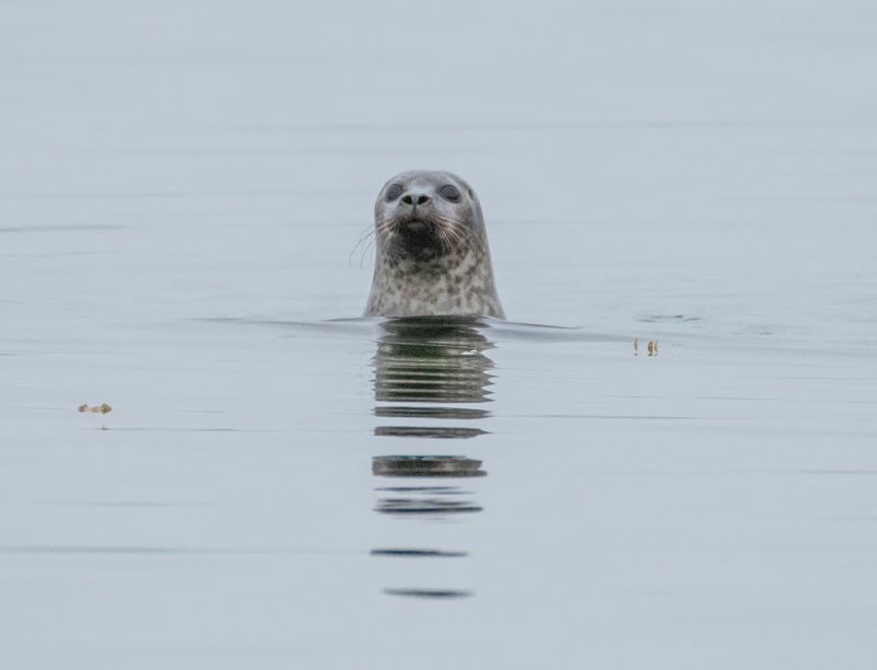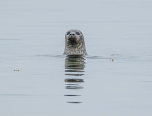 Both grey and common seals are abundant around Jura. You’ll often see them basking on rocks just offshore or popping up in bays to see what’s happening. There are small colonies around the northwest of Loch Tarbert. The common seals are cute-looking creatures with rounded heads, big flippers, whiskery muzzles, and large, dark eyes. They’re much smaller than grey seals which are around 2 meters long, nose to tail.