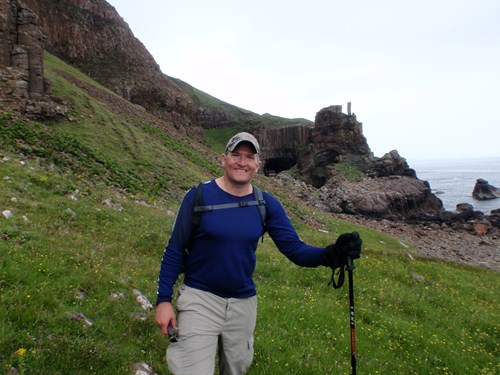 Bursting east along the Ross of Mull we cover the roughest ground I tackled on the Stevenson Way, my efforts rewarded by sea eagles soaring above and bottlenose dolphins galloping along the shore. Here we come to Pennyghael Stores – take a seat on the coffin rest and gaze out over the loch towards Ben More. They do a proper cup of coffee and lovely cakes too.